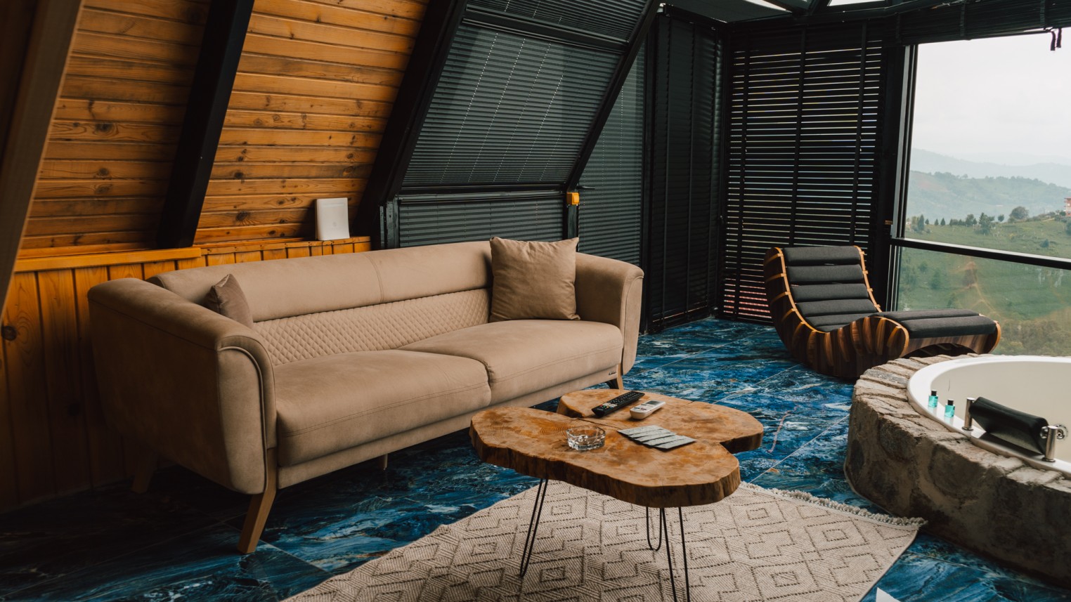 -Bungalovumuzda, jakuzi, oturma grubu, şömine, banyo, tv(Netflix), minibar ve double(çift kişilik) yatak bulunmaktadır.