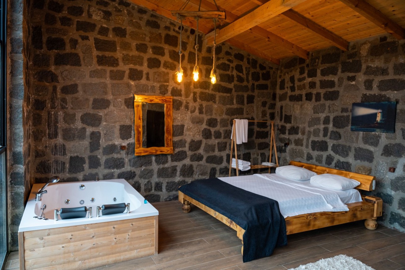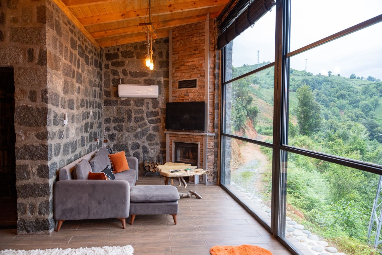 -Taş bungalovumuz jakuzili ve şömineli olup muhteşem dağ ve deniz manzarasına sahiptir.